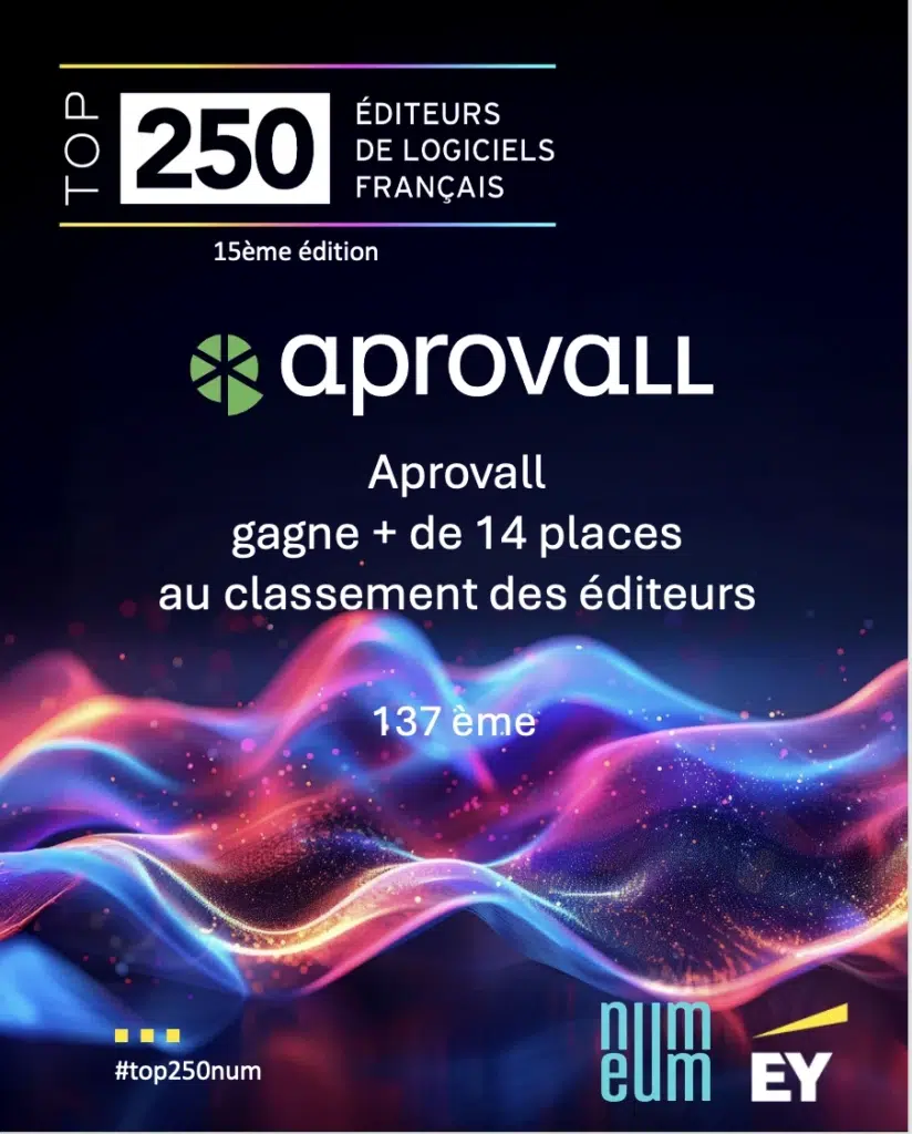 Nous sommes fiers d’annoncer qu’Aprovall se hisse à la 137ᵉ place du TOP 250 des éditeurs de logiciels français, publié chaque année par Numeum en partenariat avec EY.